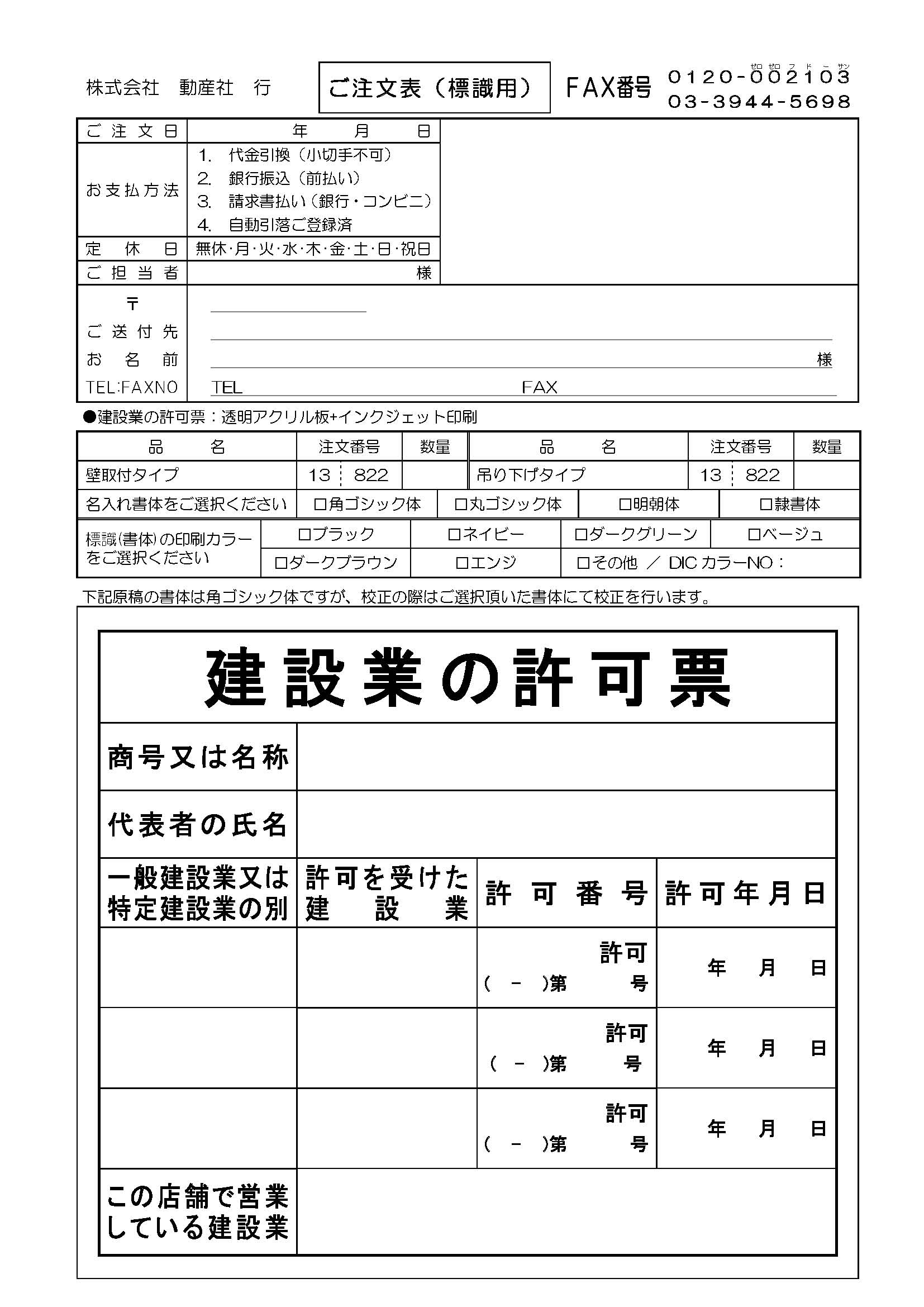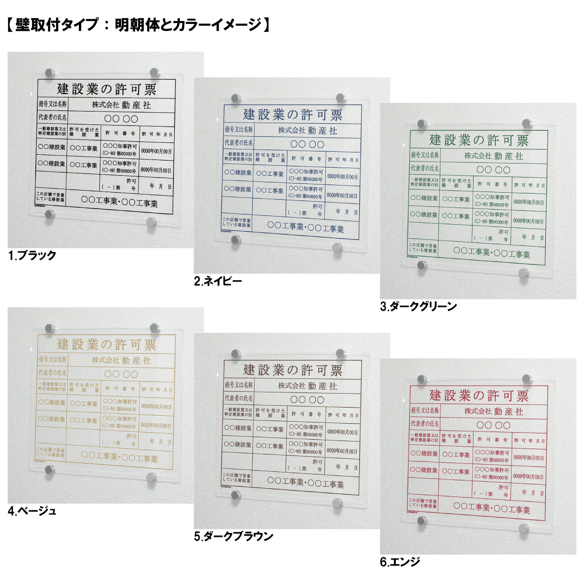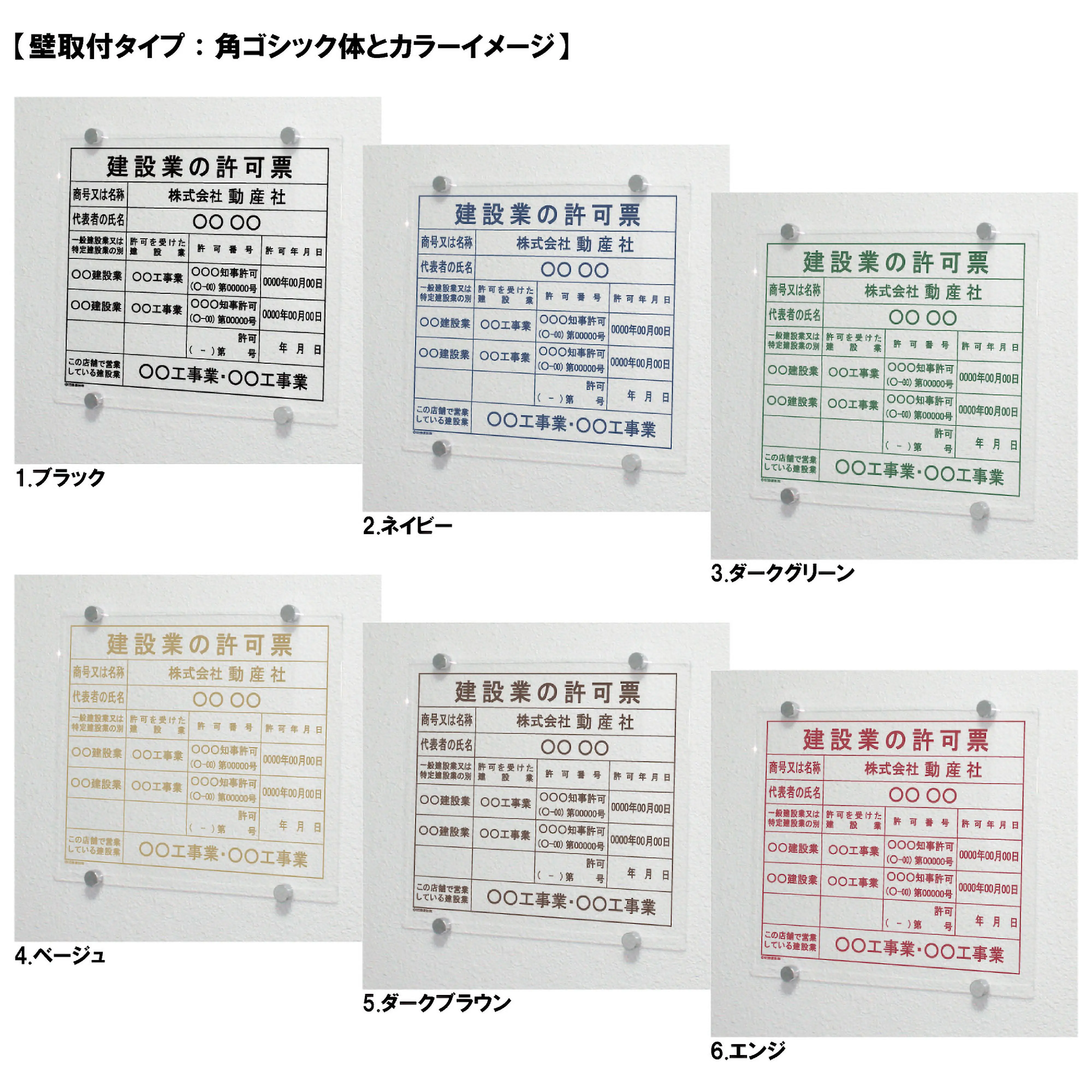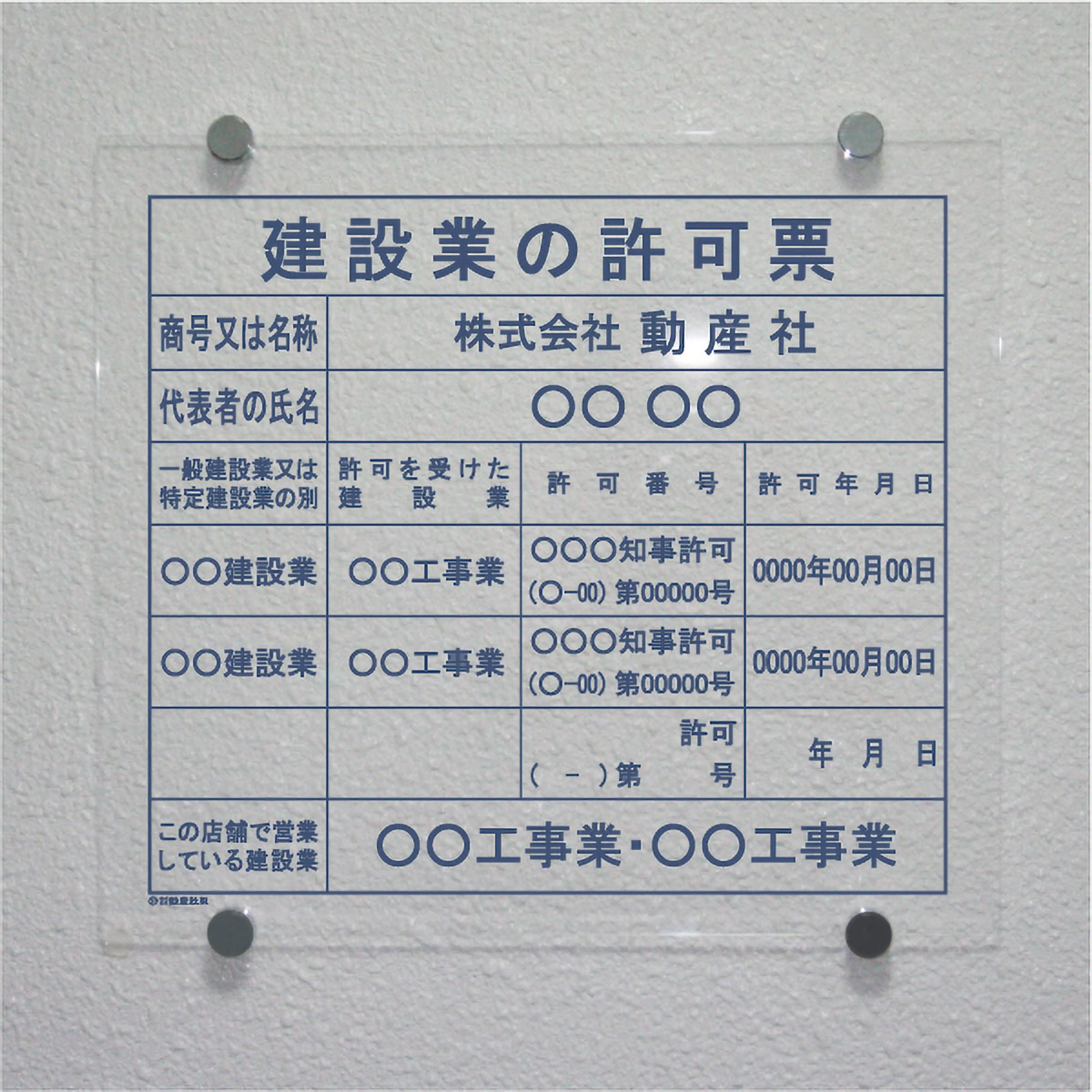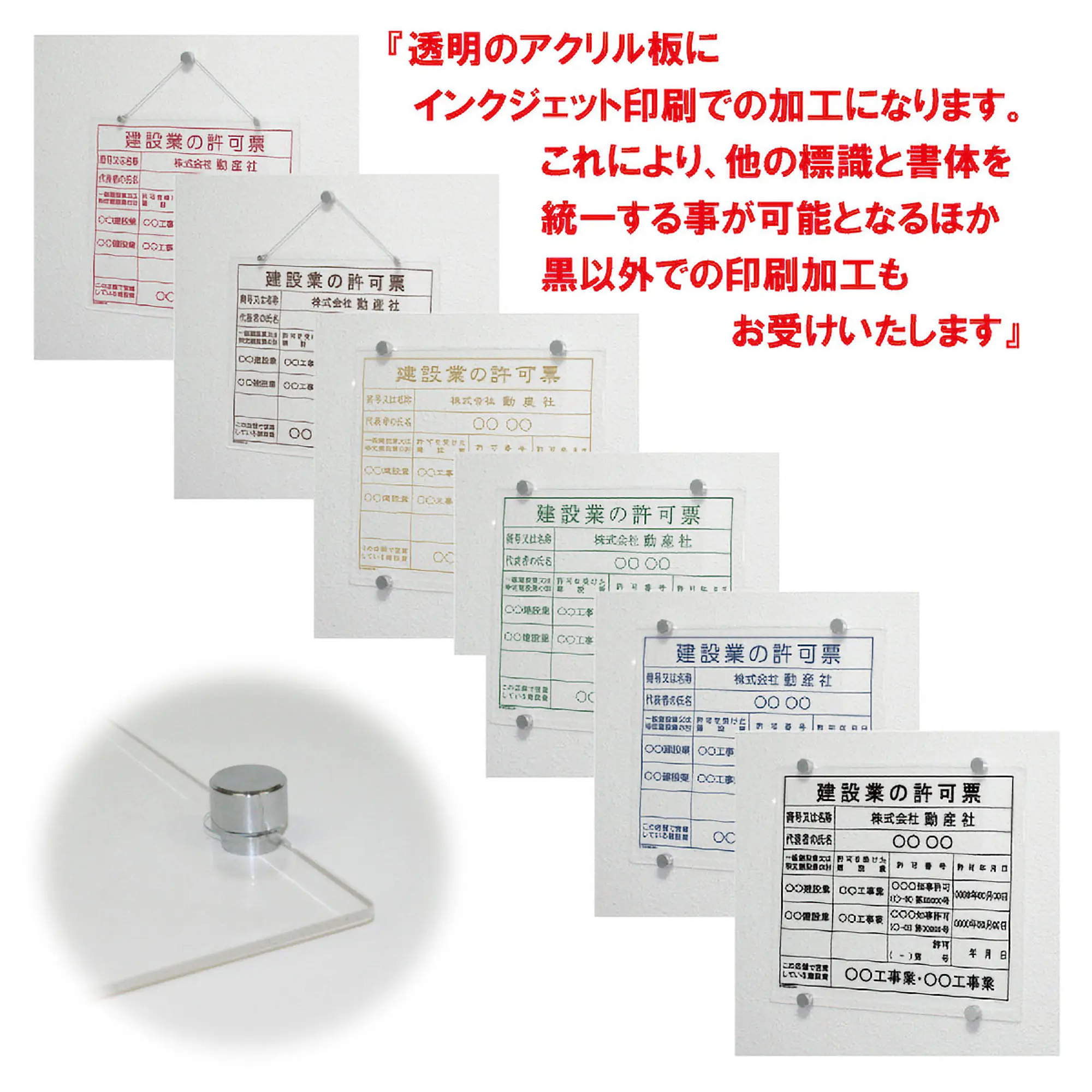 建設業の許可票/事務所用:透明アクリル板+インクジェット印刷