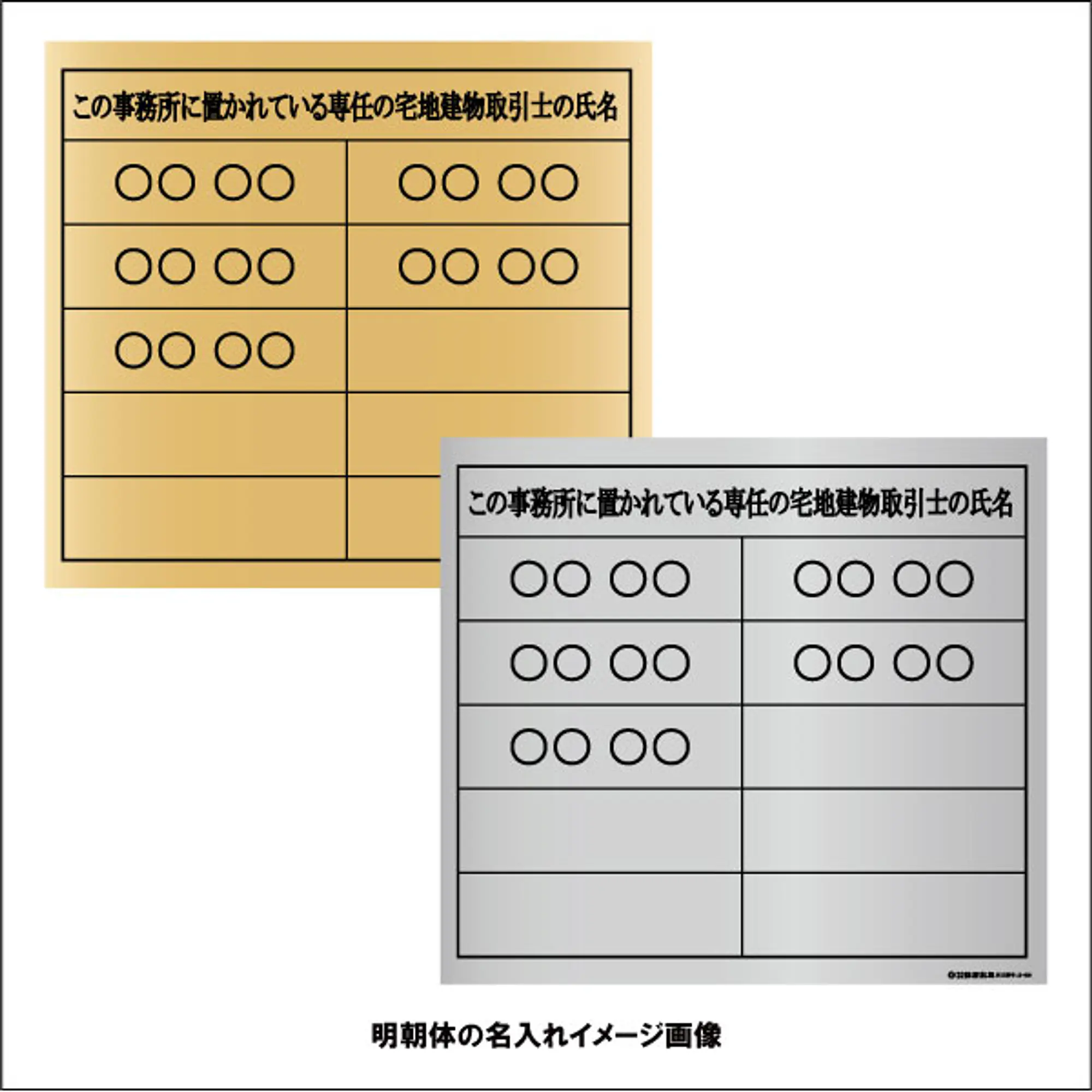 - 取引士の標識内にご変更が生じた場合、全面貼り替えにて変更が可能です。