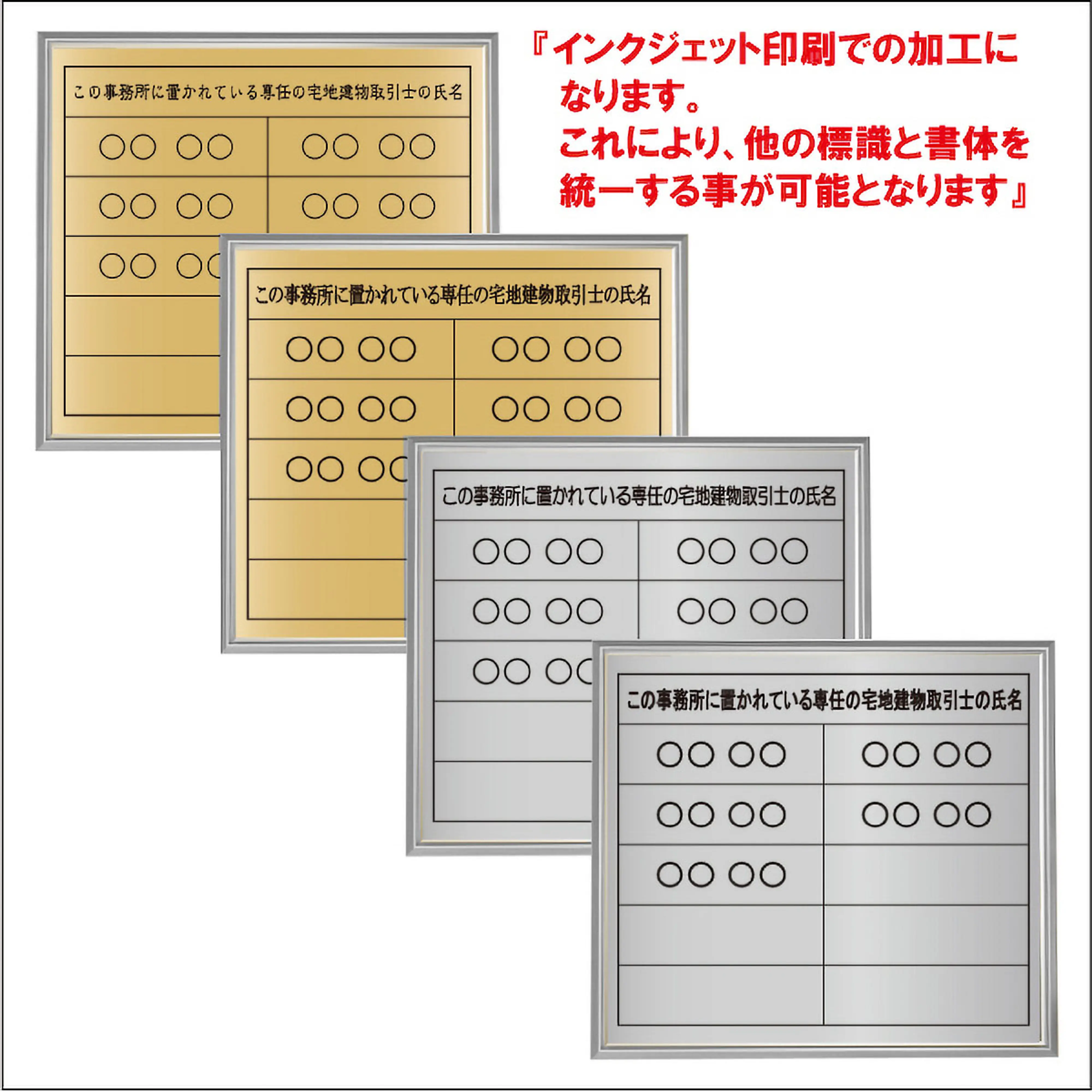 宅地建物取引士用標識:インクジェット印刷