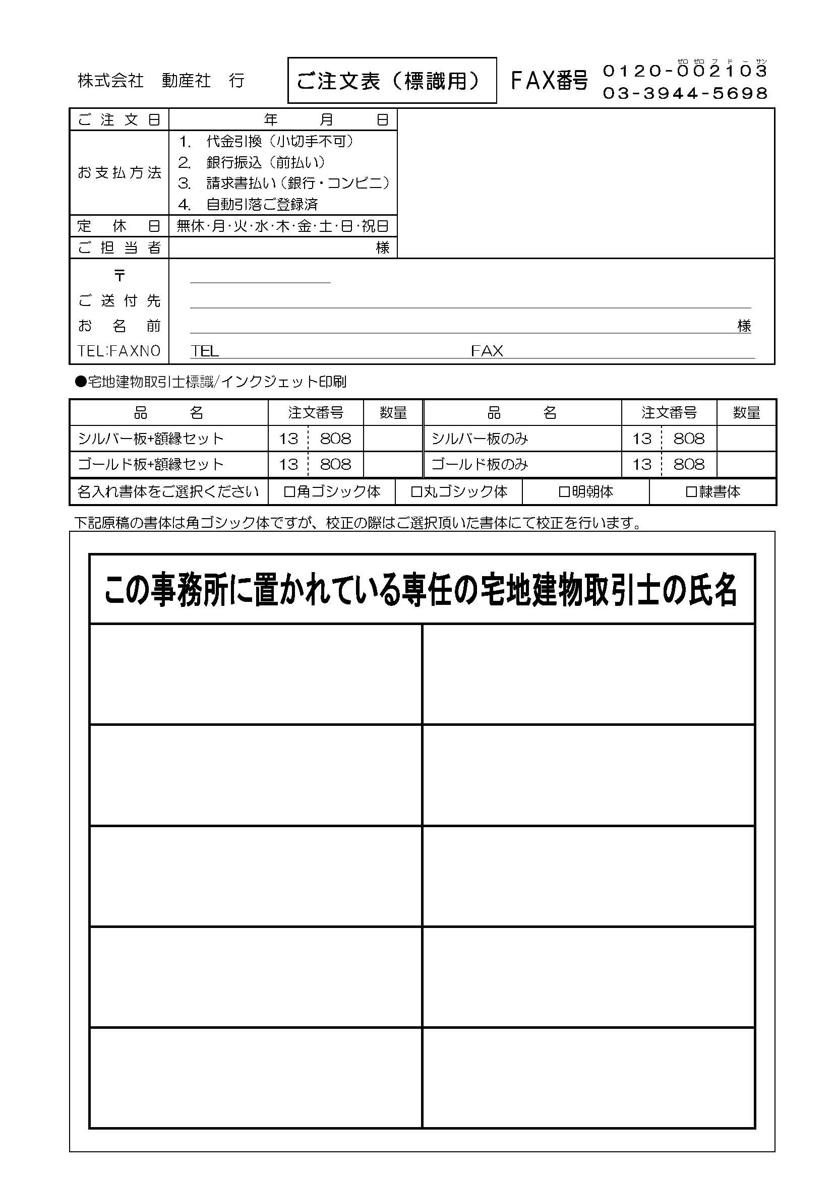 (弊社宛ての配送は、お客様の配送料ご負担にてお願いいたします) - 【お電話・ファクスでもご注文いただけます】
