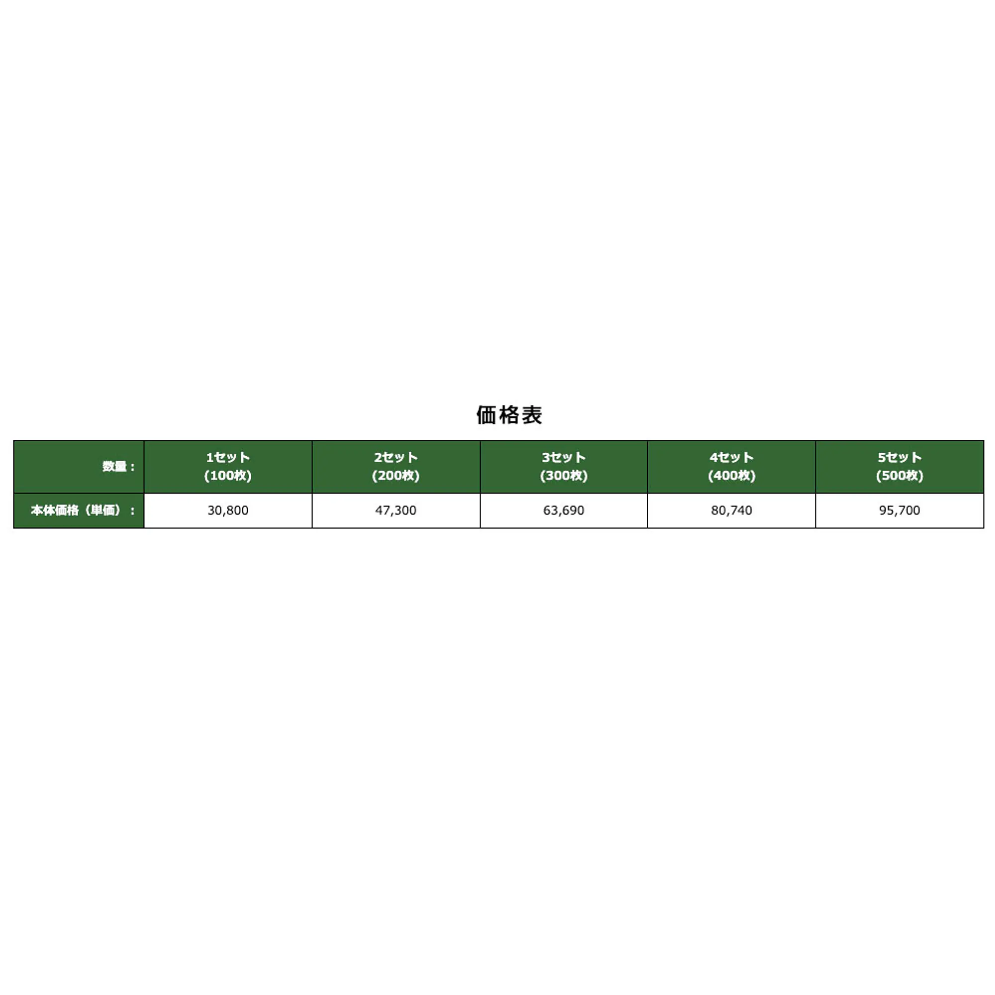 | 数量: | 1セット (100枚) | 2セット (200枚) | 3セット (300枚) | 4セット (400枚) | 5セット (500枚) |