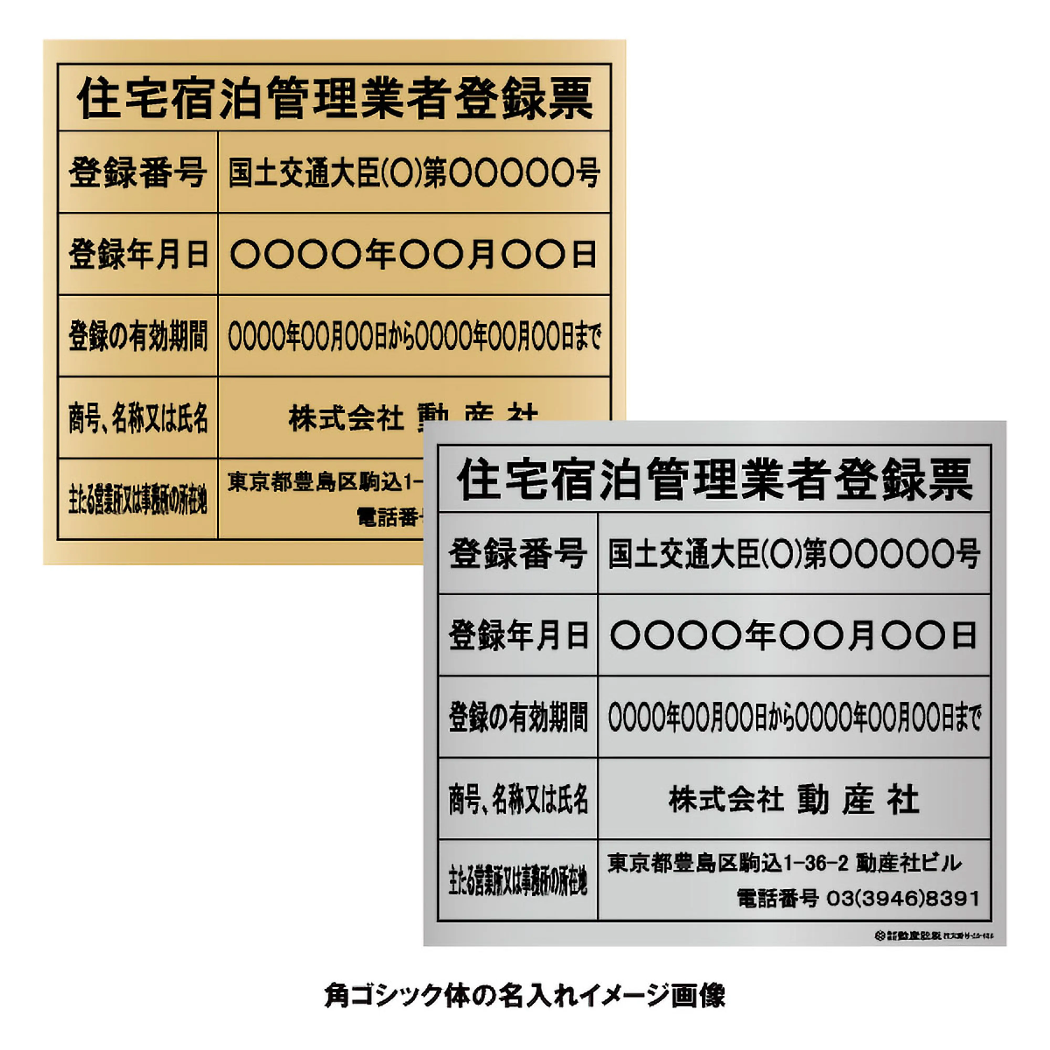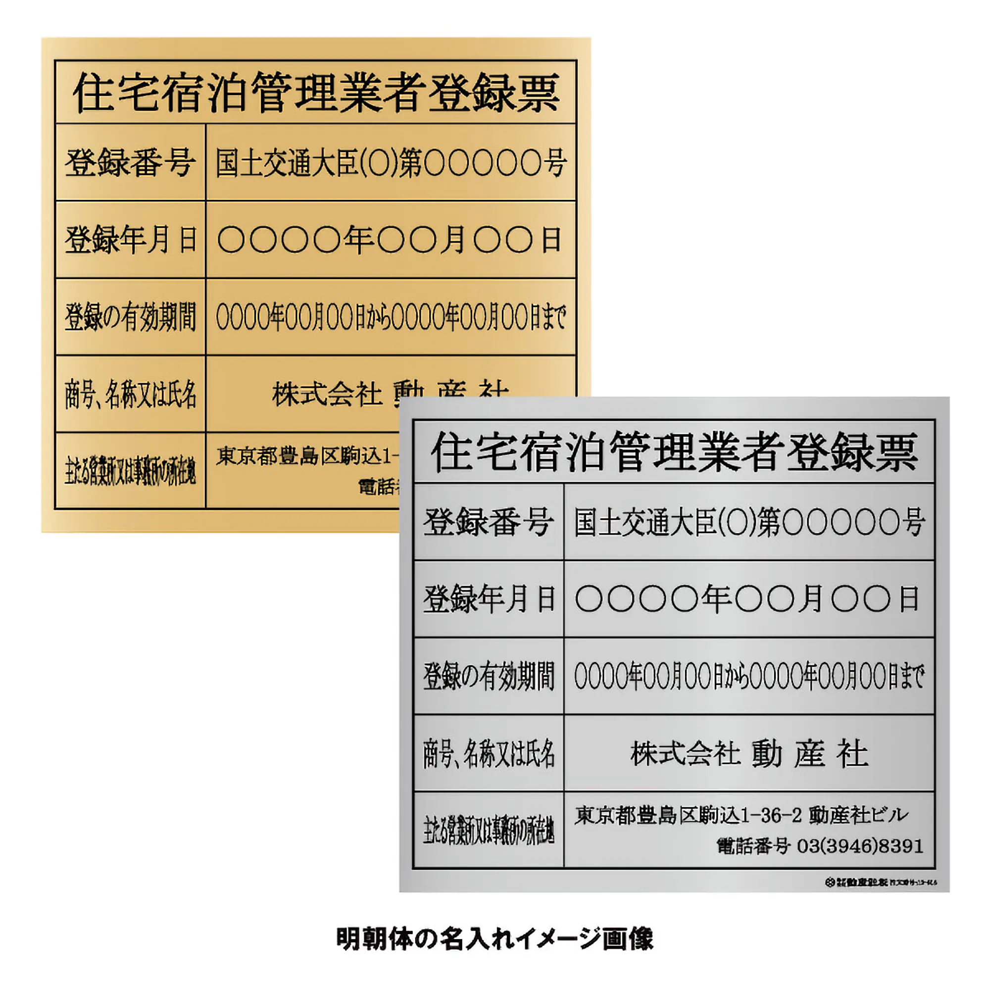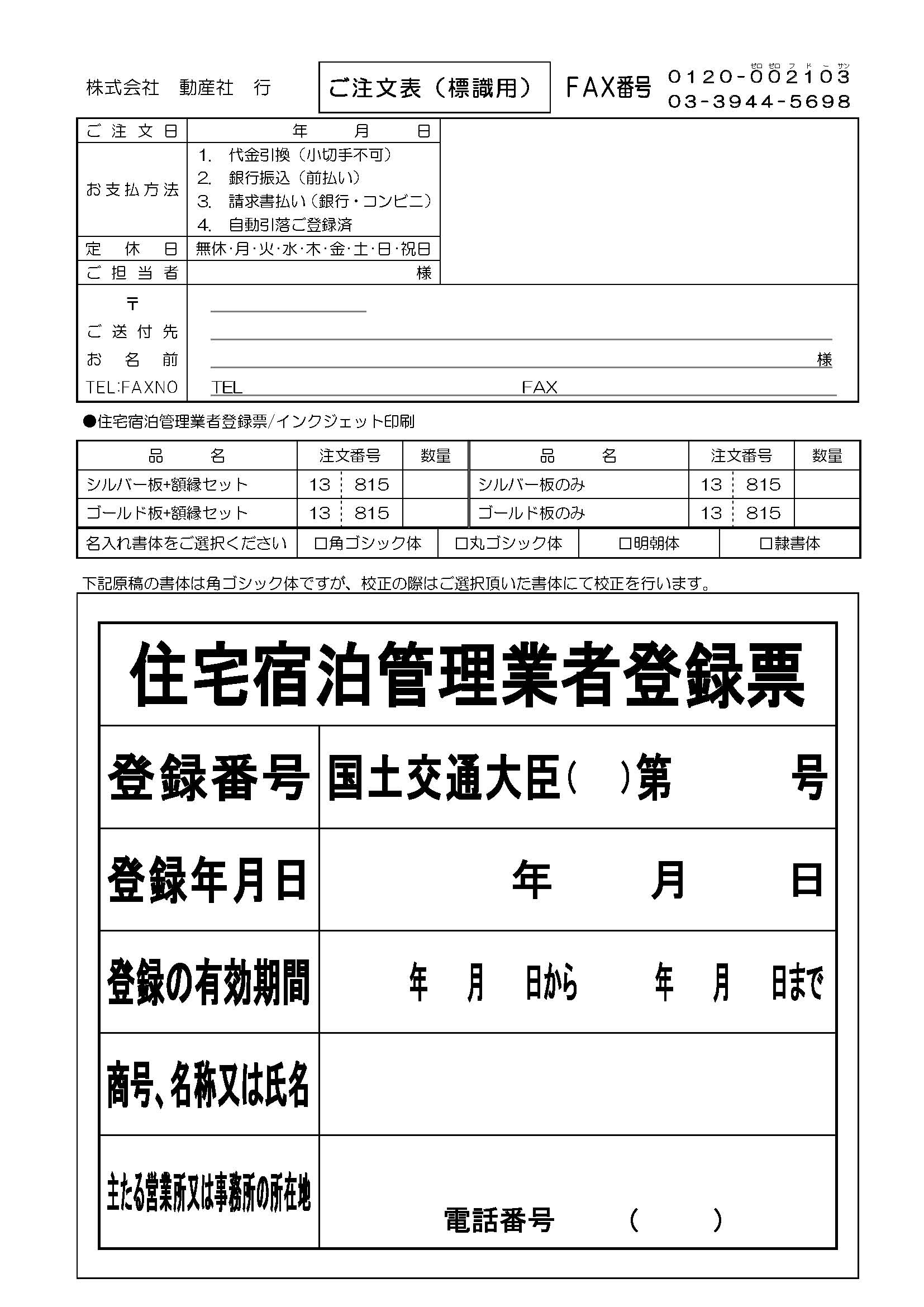 住宅宿泊管理業者登録票(民泊):インクジェット印刷