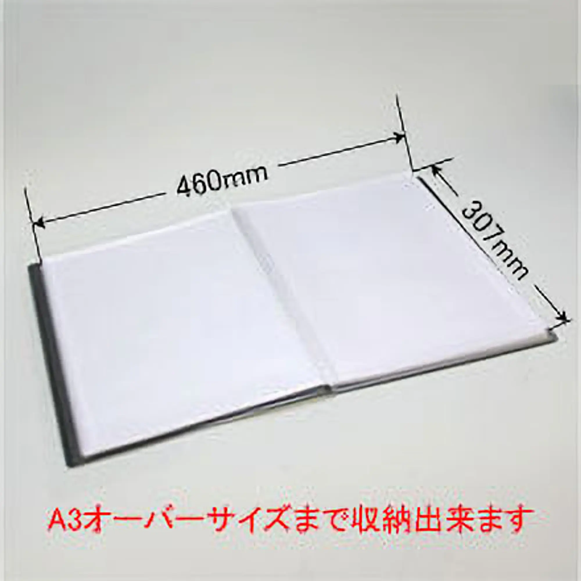 A4オーバーサイズ用(A3サイズ収納可能) 内袋8枚(16ポケット) 名刺入れ ウラ表紙の内側にA4用エンボス加工ポケット付