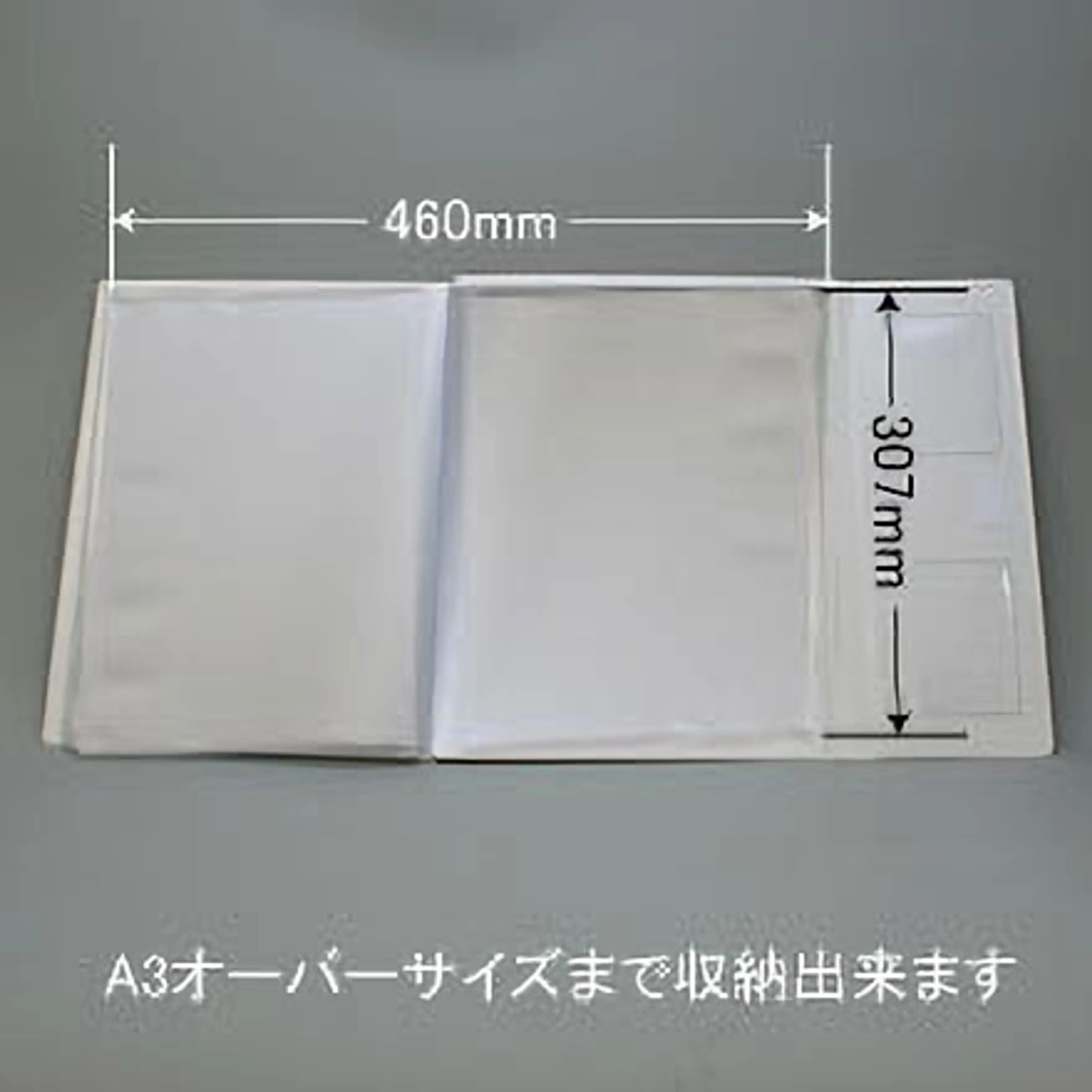 A4オーバーサイズ(A3サイズ収納可能) 三つ折り 内袋8枚(16ポケット) 名刺入れ ウラ表紙の内側にA4用エンボス加工ポケット付