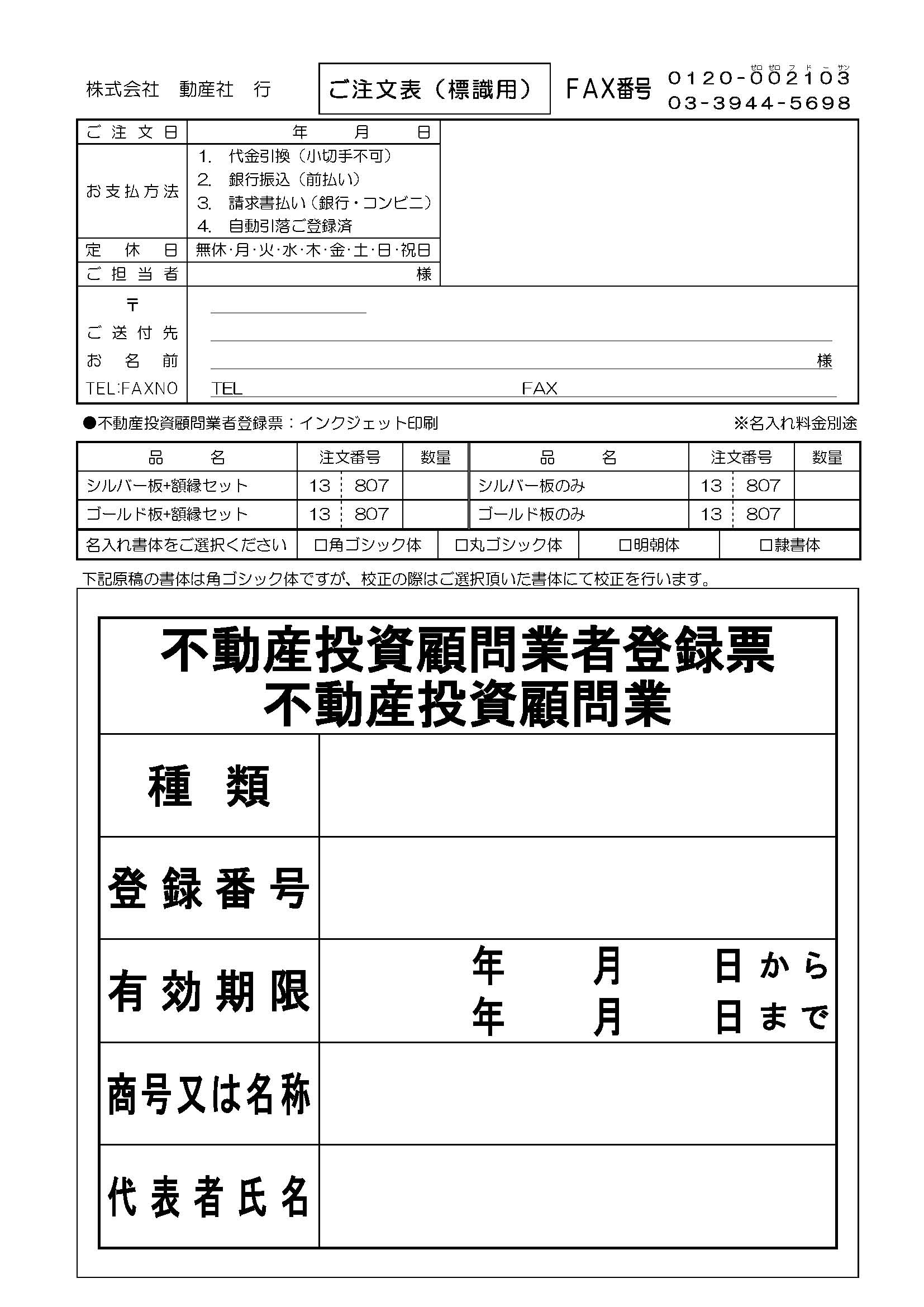 不動産投資顧問業登録票:インクジェット印刷