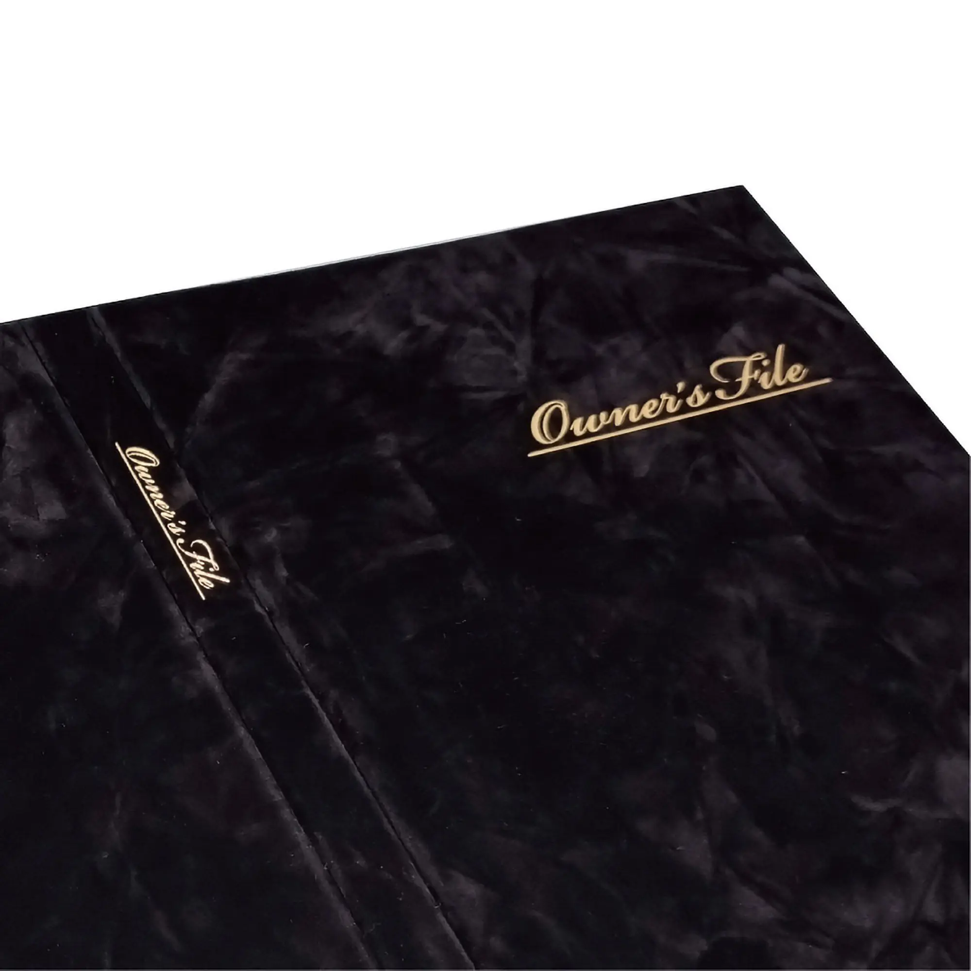 - 金箔で「Owner’s File」(筆記体)のタイトルが、オモテ表紙及び背表紙に印刷されております。