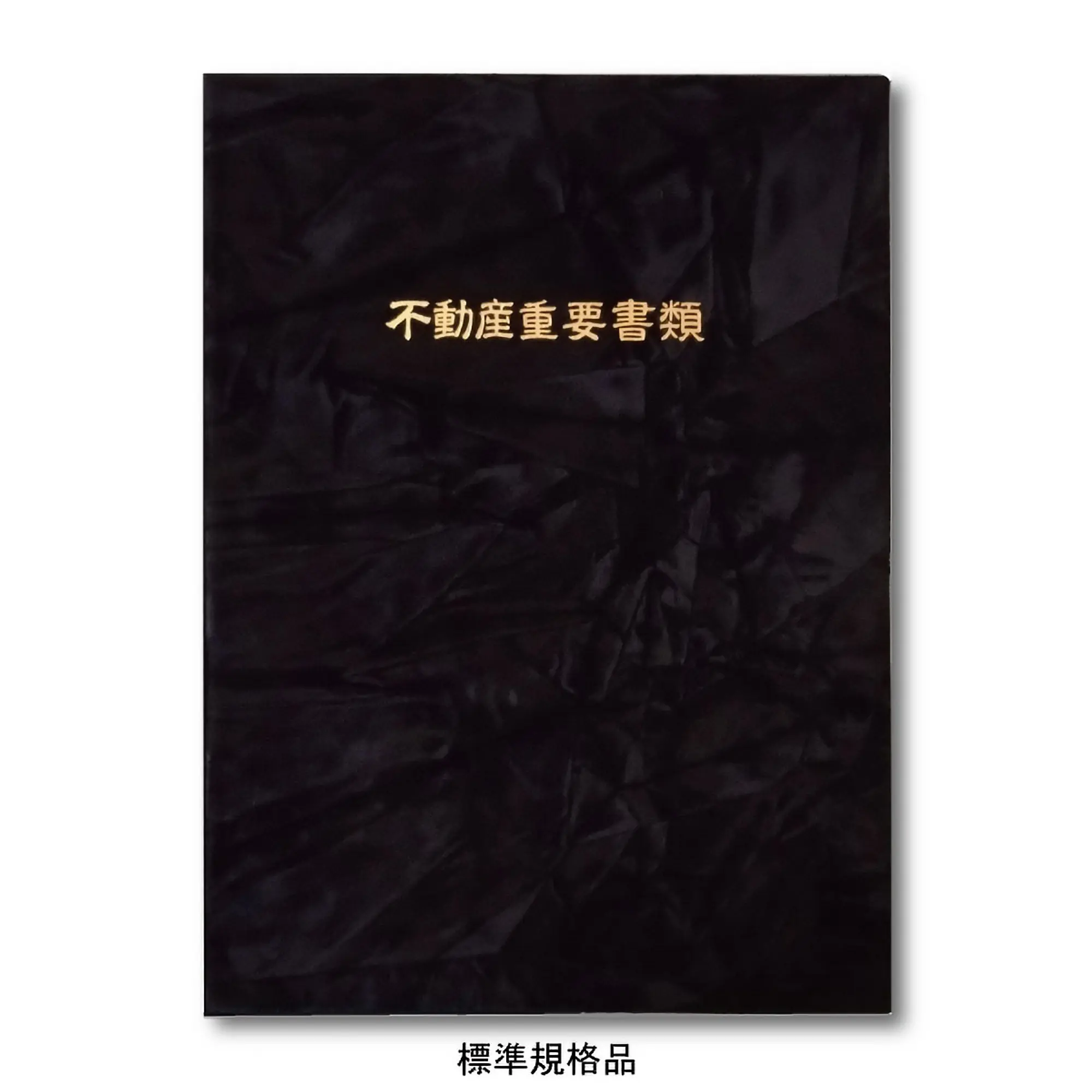 - 金箔で「不動産重要書類」(隷書体)のタイトルが、オモテ表紙及び背表紙に印刷されております。