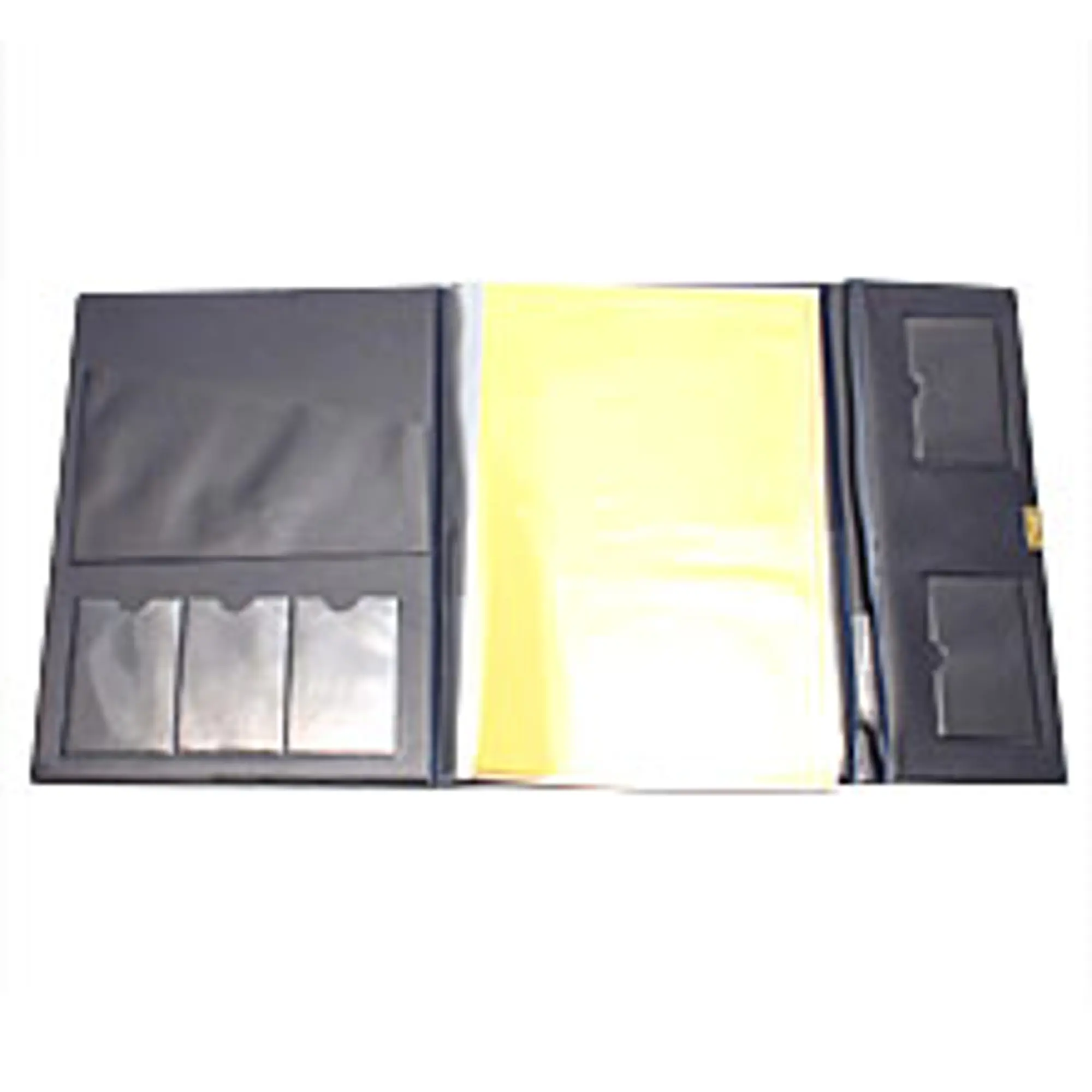 A4サイズ用 三つ折り 内袋6枚 名刺入れ ウラ表紙の内側にA4用透明ポケット 蓋を閉じる為の留め金具付