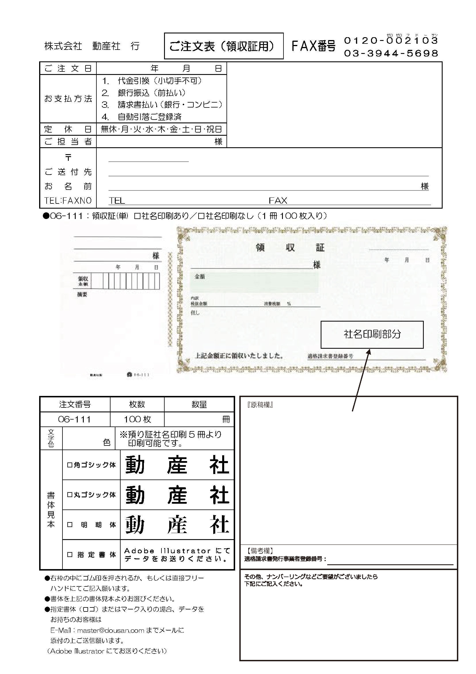 ※ナンバーリングは社名印刷ご希望のお客様に限ります。- 【お電話・ファクスでもご注文いただけます】