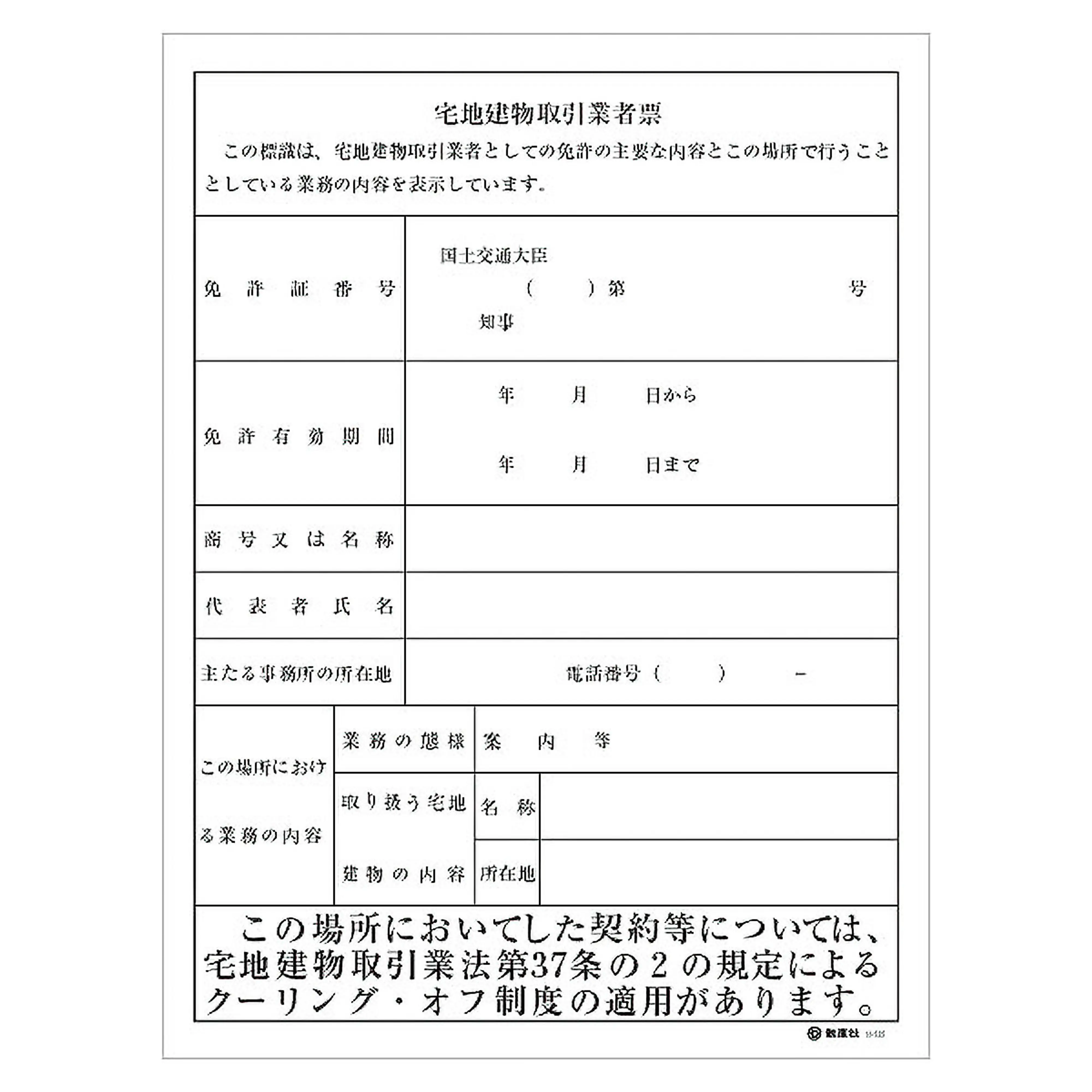 宅地建物取引業者票(現地用)様式10‐2