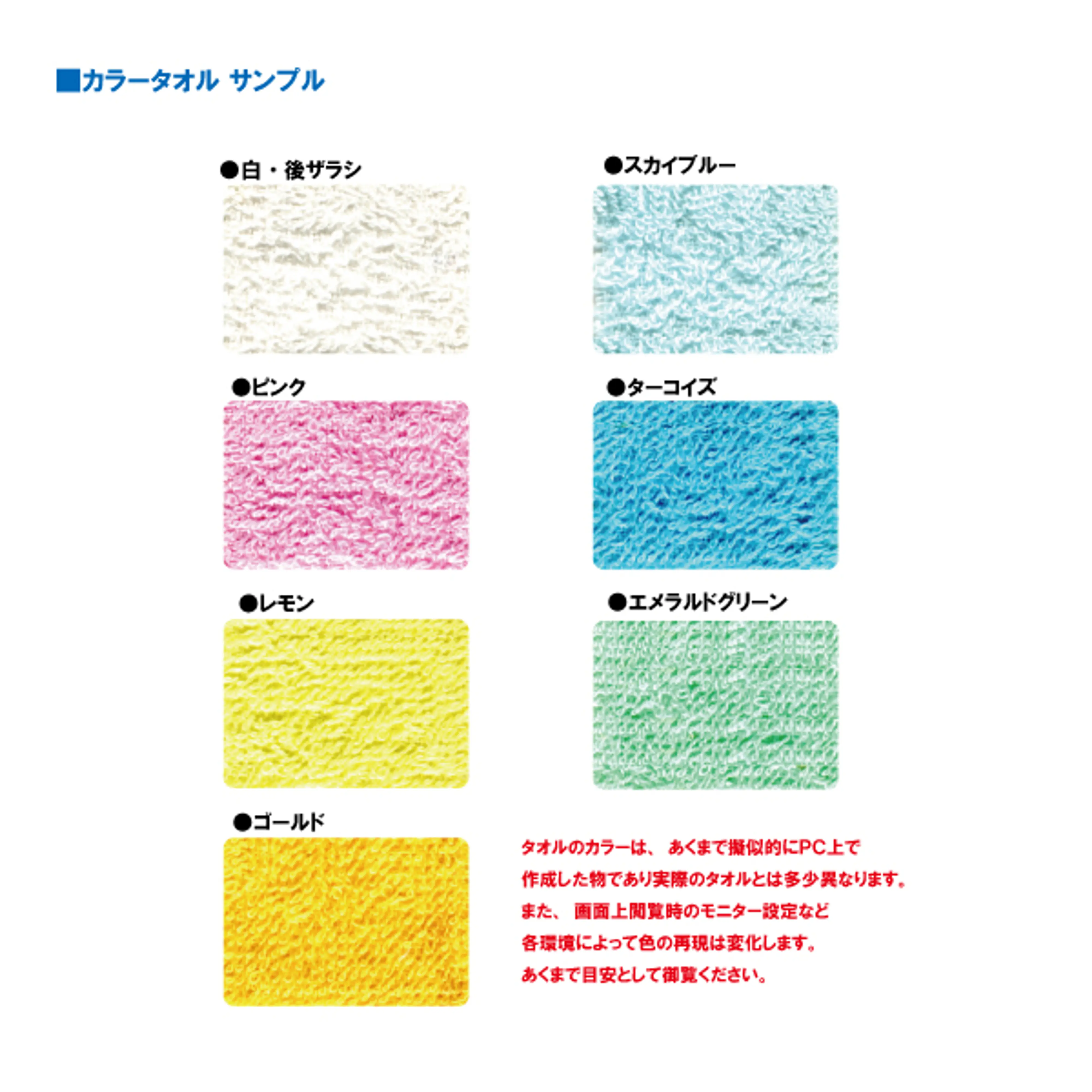 | 【価格】 | 白・後ザラシ (1本あたり) | カラータオル (1本あたり) |