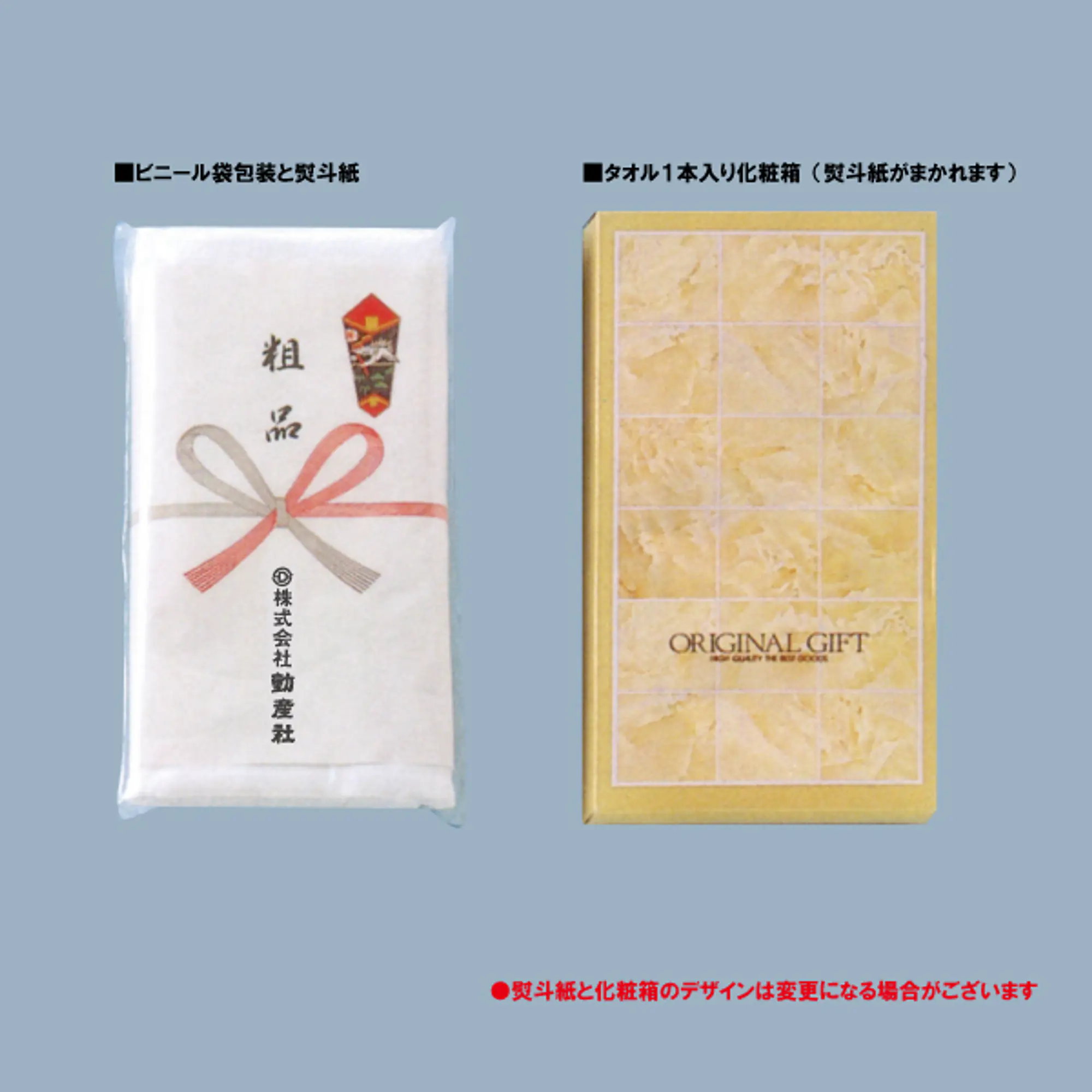 ビニール袋包装とのし紙印刷代は上記料金に含まれます。