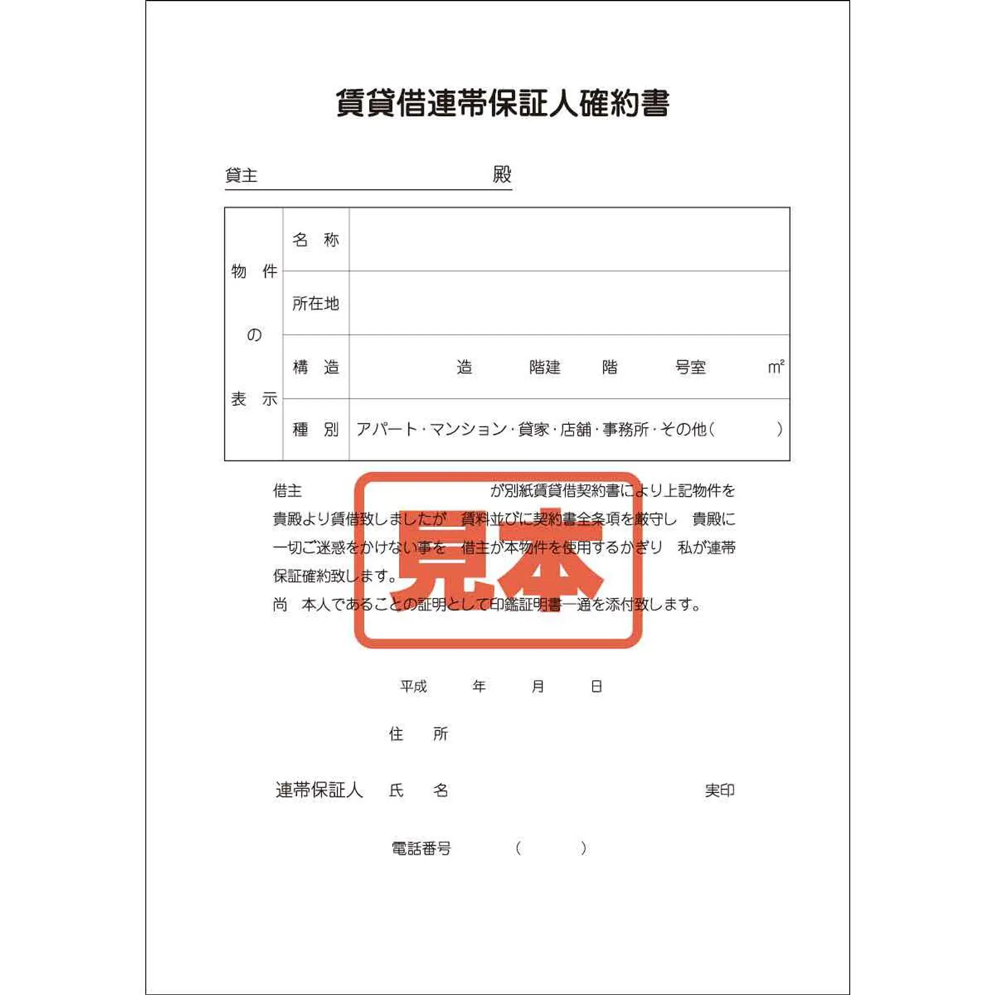 CD・賃貸借連帯保証人確約書