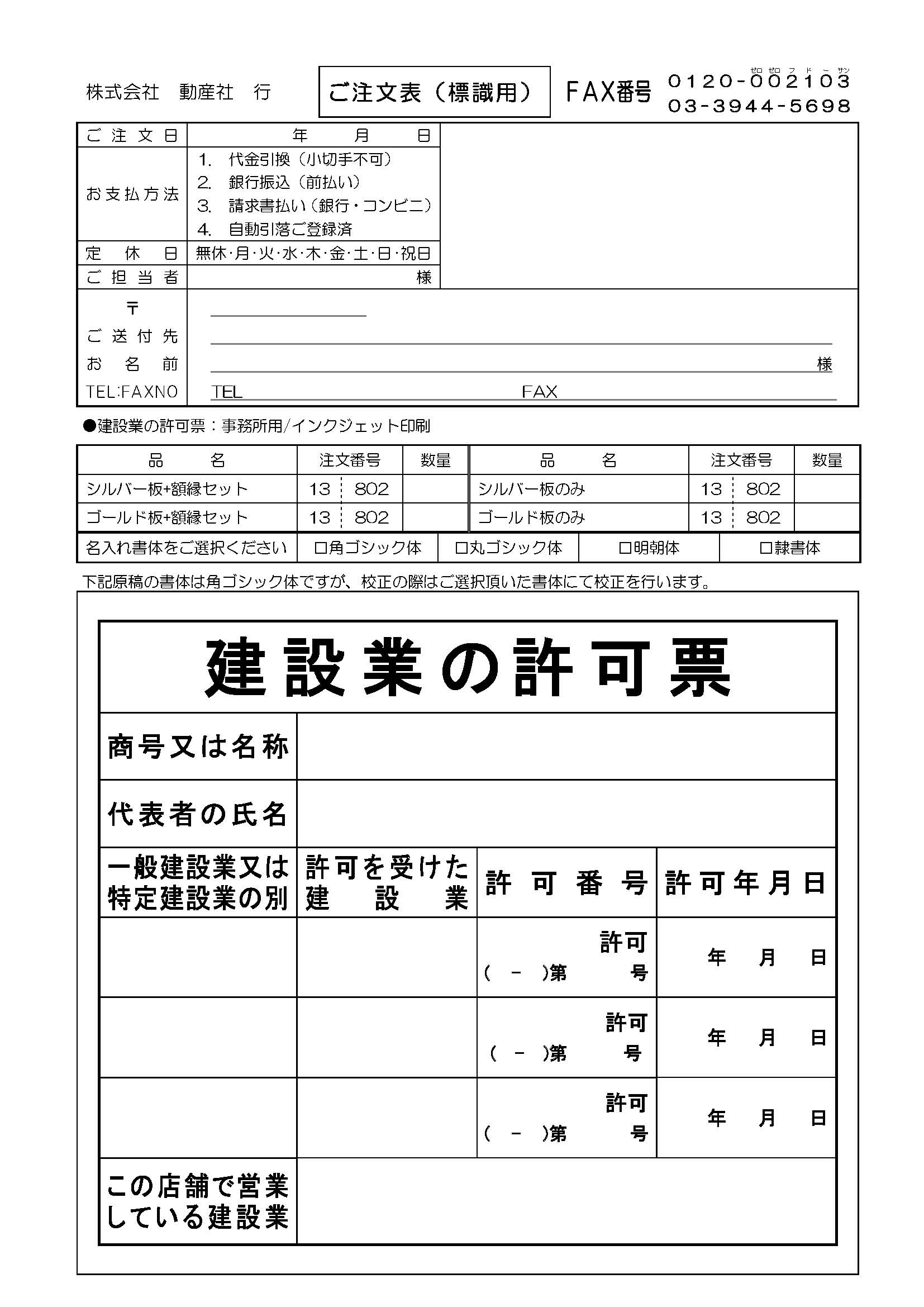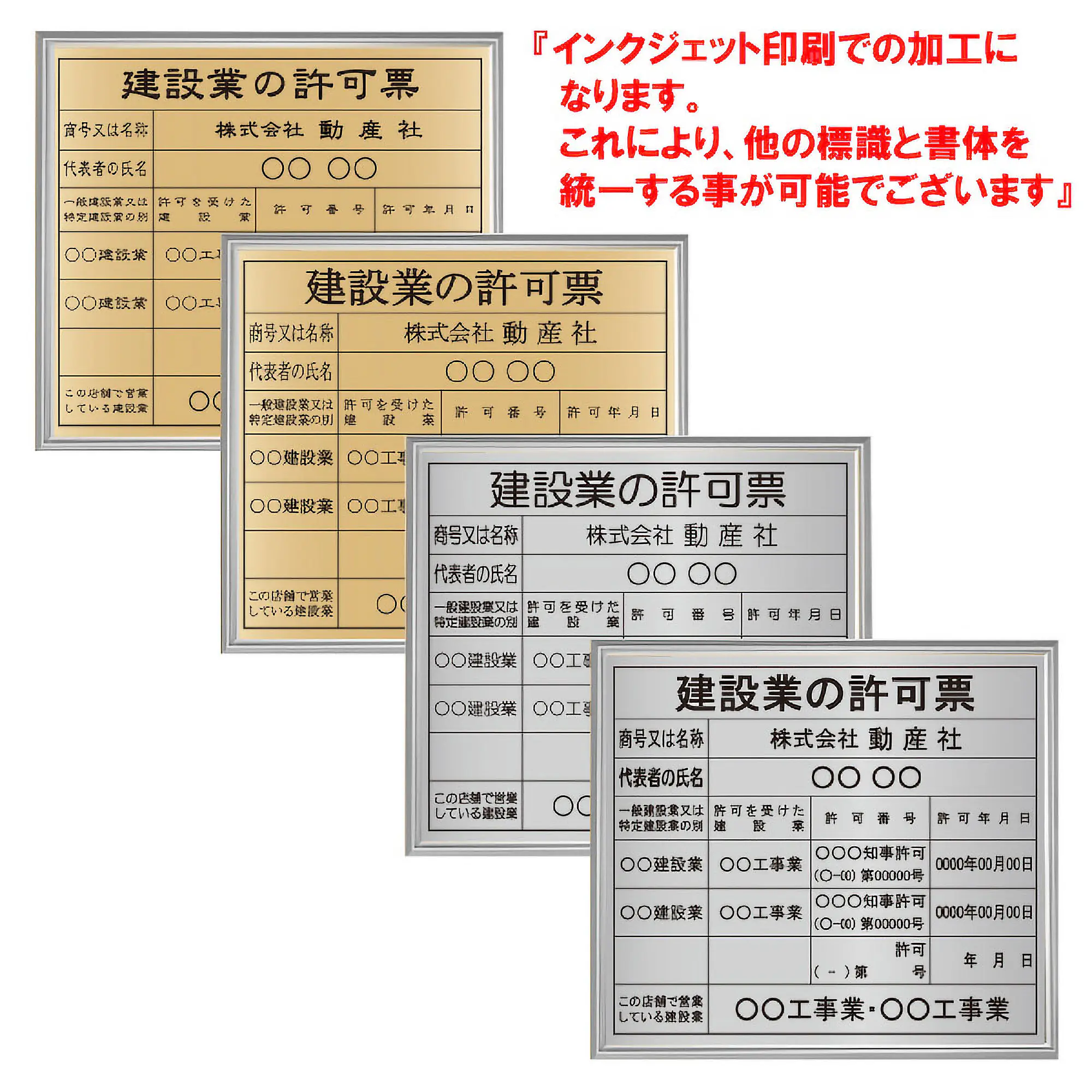 建設業の許可票:事務所用/インクジェット印刷