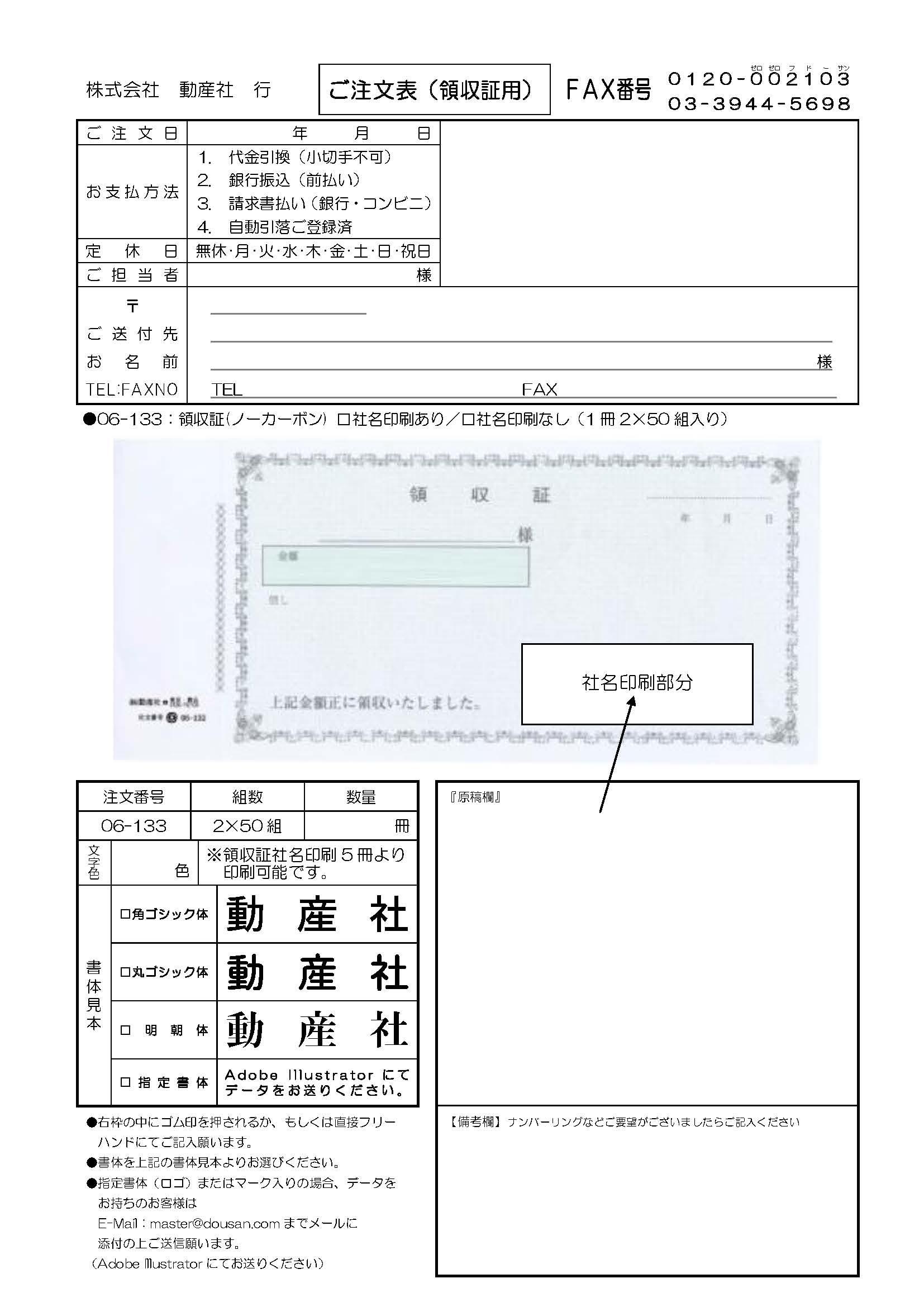※ナンバーリングは社名印刷ご希望のお客様に限ります。- 【お電話・ファクスでもご注文いただけます】