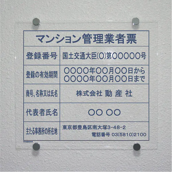 マンション管理業者票:透明アクリル板+インクジェット印刷