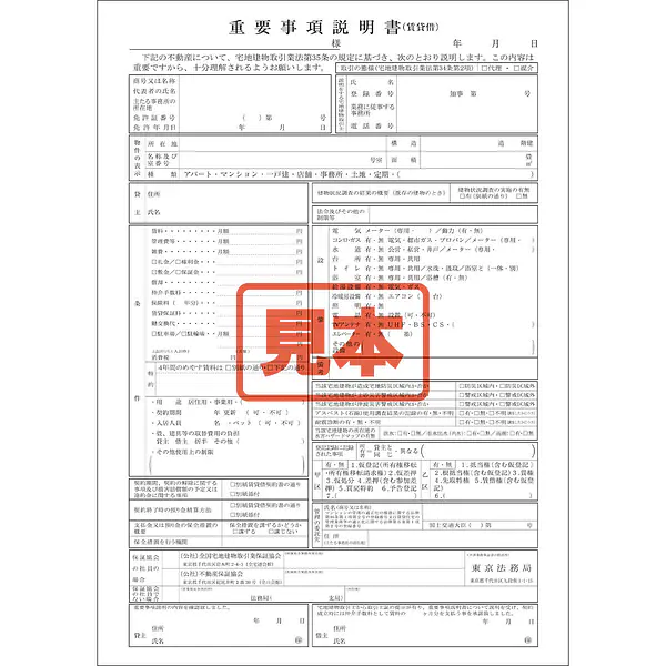 ダウンロード・重要事項説明書(賃貸借)詳細付 A4サイズ